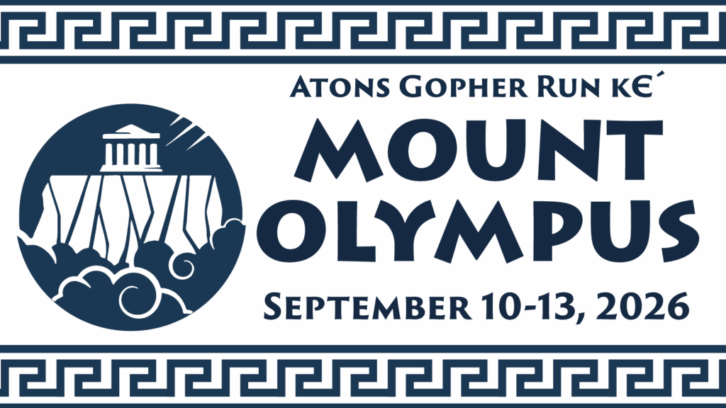 Join the Atons as we ascend Mount Olympus for a legendary weekend of fellowship, camping, and play.